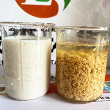 綠森環(huán)保技術(shù)團(tuán)隊(duì)?wèi)?yīng)某化妝品客戶要求上門(mén)技術(shù)服務(wù),現(xiàn)場(chǎng)給客戶廢水破乳劑中試。客戶廢水:沐浴露廢水,特點(diǎn):含有乳化劑、增稠劑、抗氧化劑、防腐殺菌劑和香精色素等,廢水顏色:淺黃色。使用破乳劑破乳后廢水上清液清澈透明,如下圖       &nbs···